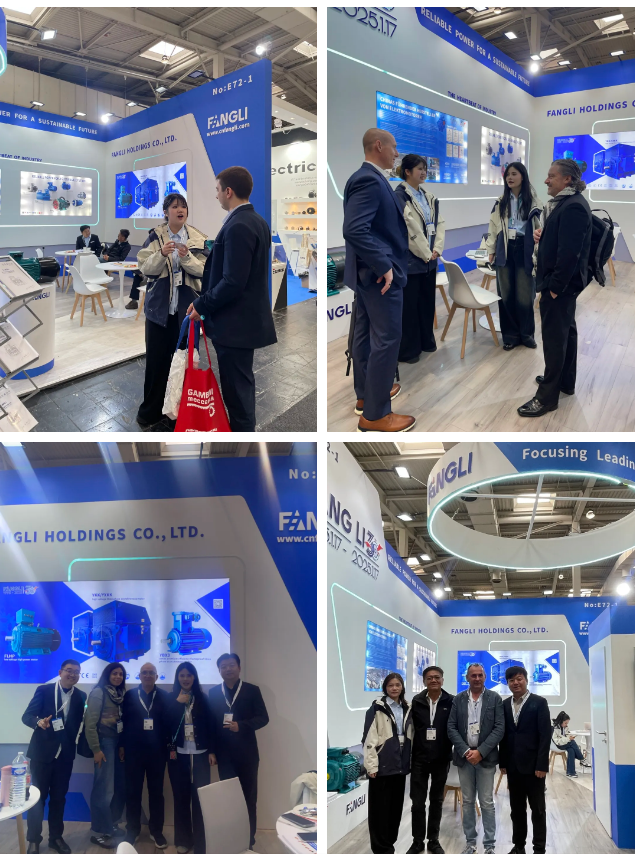 展会期间,方力电机展位成为全场焦点,吸引了来自欧洲、美洲、亚洲等地区的数百位客户与合作伙伴。技术团队通过现场演示与专业讲解,详细展示了IE3、IE4高效电机在节能减排中的应用案例,高低压电机在多场景下的卓越性能,以及防爆电机在高风险环境中的安全保障。观众对产品的高效率、低噪音与长寿命设计赞叹不已,特别对防爆电机的可靠性和安全性表现出浓厚兴趣。方力电机与多家国际企业就定制化电机解决方案展开深入洽谈,达成多项初步合作意向,赢得广泛好评。展位现场设置的互动体验区,让客户通过模拟系统直观感受电机运行效率与防爆性能,吸引了大量观众参与,进一步提升了品牌影响力。